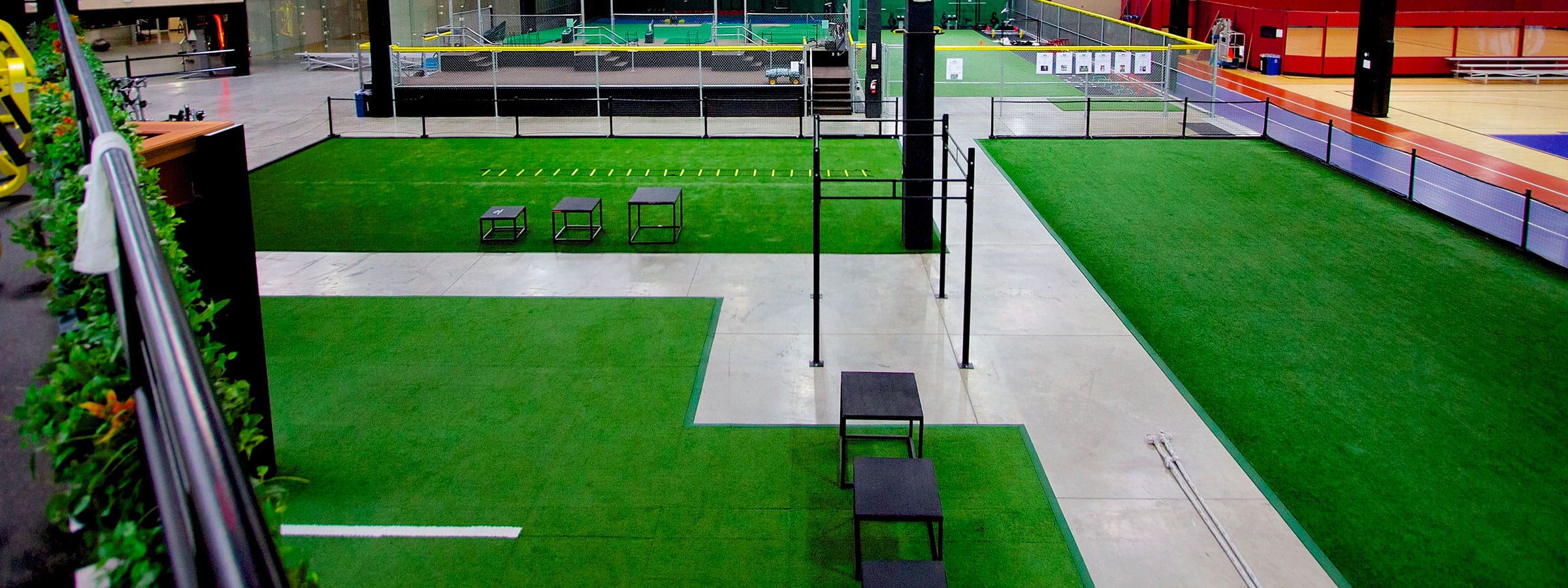 แม้หญ้าเทียมจะถูกออกแบบมาสำหรับกลางแจ้ง แต่ก็สามารถนำมาใช้ภายในอาคารได้ เช่น