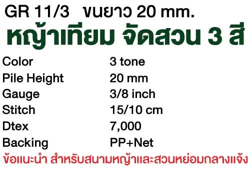 หมายเหตุ: หญ้าเทียมสามารถติดตั้งได้ทั้งพื้นดินและพื้นปูน