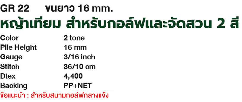 - หญ้าเทียม เหมาะสำหรับสนามกอล์ฟกลางแจ้ง